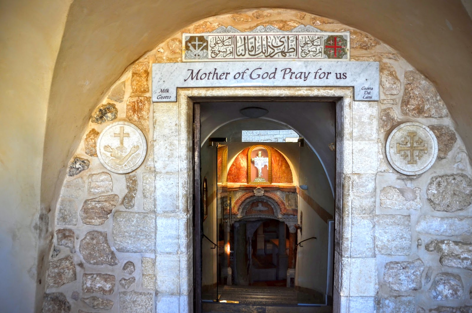 Milk Grotto是當初耶穌的家人為了逃避Herod的追兵,而躲藏到這個洞穴。聖母瑪莉亞在這個洞穴裡餵耶穌喝奶。據傳當聖母瑪莉亞的母乳滴了一滴在洞穴的地板上,洞穴的石頭立刻變成乳白色,而被滴到的那塊石頭頓時升了起來。