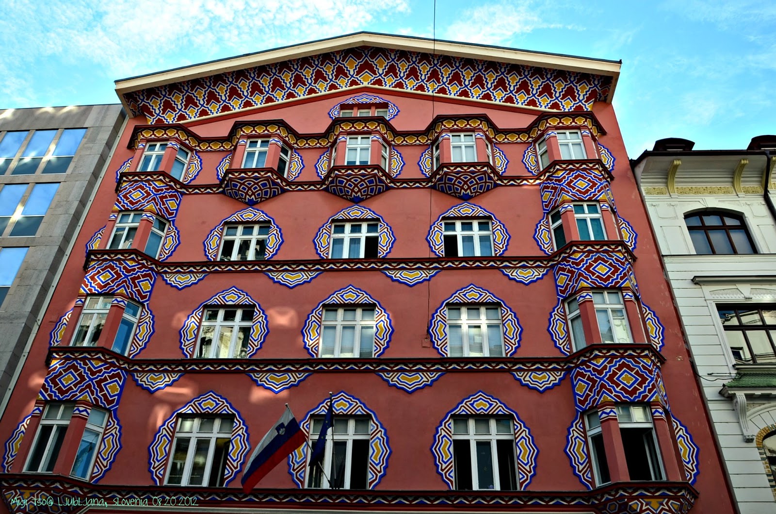 一棟被裝飾的很特別的建築物,尤其是窗戶,好像一顆一顆被彩繪的雞蛋。