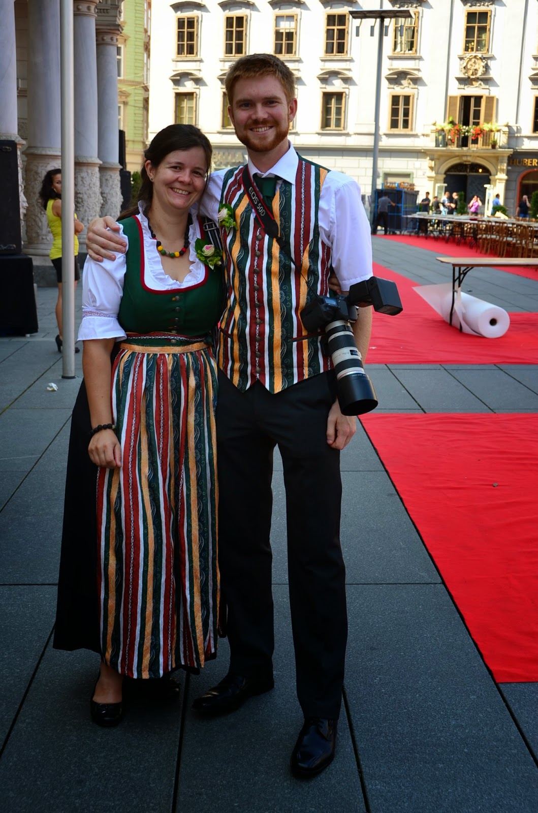 他們穿上奧地利傳統服飾參加老爸的婚禮,身為攝影師的M先生當然是當爸爸的婚攝了!