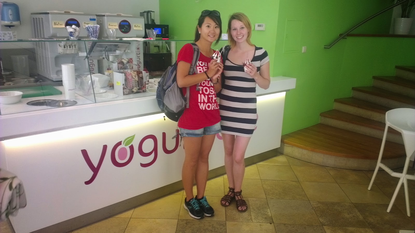 就是這間優格冰淇淋店讓我吃得好開心! (天呀!我站在B小姐旁邊簡直是黑鬼!)