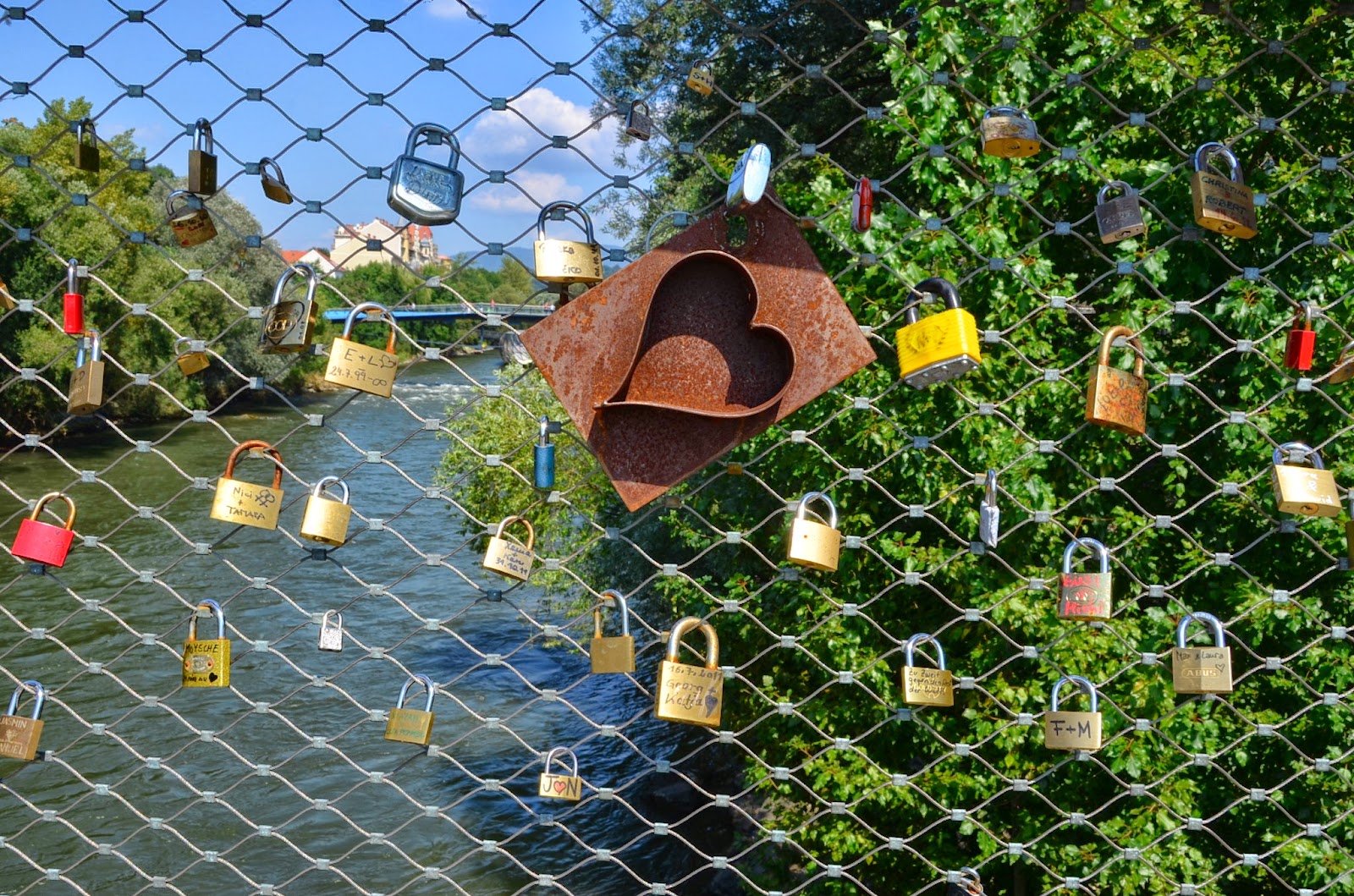 歐洲很多城市的橋上都會有這些大大小小的鎖鏈,好似希望把自己的戀情牢牢套住,天長地久永遠在一起,其實這不失為一種浪漫,也許多年後走過,看到自己的鎖一然在,不禁會嘆息於世事轉變(因為可能沒有在一起了),或與已結為連理的對方在這裡再來個深深一吻,山盟海誓,一生不變。(哈!)