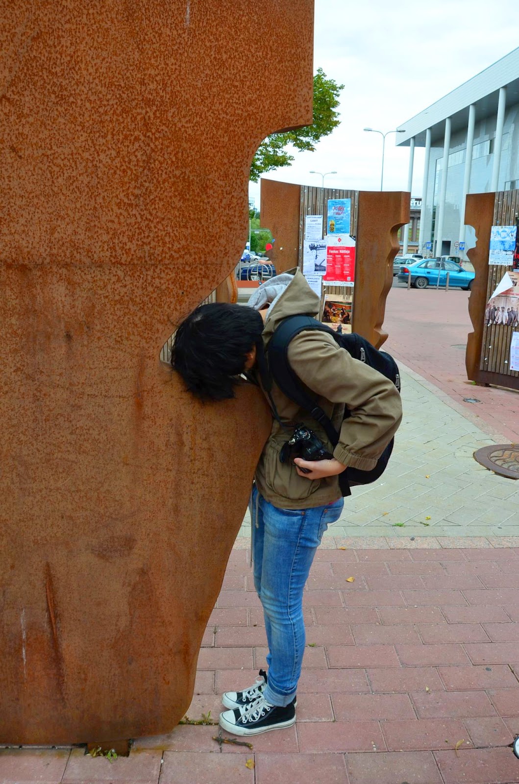 從車站往市區走時,看到這兩個等身的嬰兒與成年男子的雕像。那位成年男子的雕像是雕刻師的本身,小男孩的則是當時他幼小的兒子;有趣的是他把他兒子跟他的身高雕的一模一樣,比對小孩與大人身體的差別。