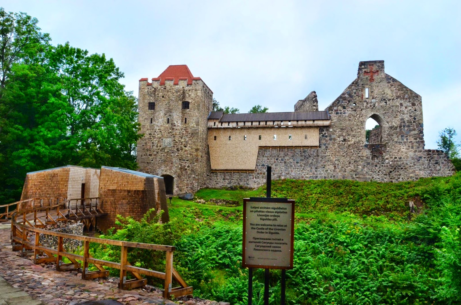 最後一站,Sigulda Medieval 城堡。四周只剩下斷垣殘壁,建於13世界,經歷多次戰亂不斷摧毀,直到18世紀被棄置至今沒有修復,所以以往的美貌已斷然看不見。