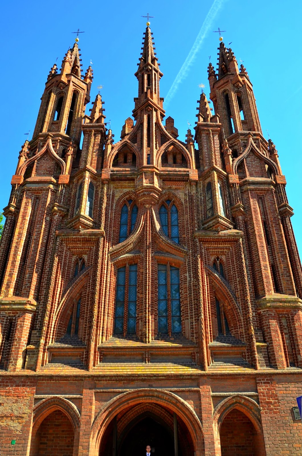 下了山坡後,走沒多遠就是聖安尼教堂,是當時立陶宛大公爵為了心愛的妻子而建造這第一間由紅磚與木頭而建教堂。每個經過此教堂的人都會被它的美麗給吸引,就連當時法國拿破崙攻佔到這裡時都被這美麗的教堂給吸引,甚至還說他希望可以把它搬回巴黎。