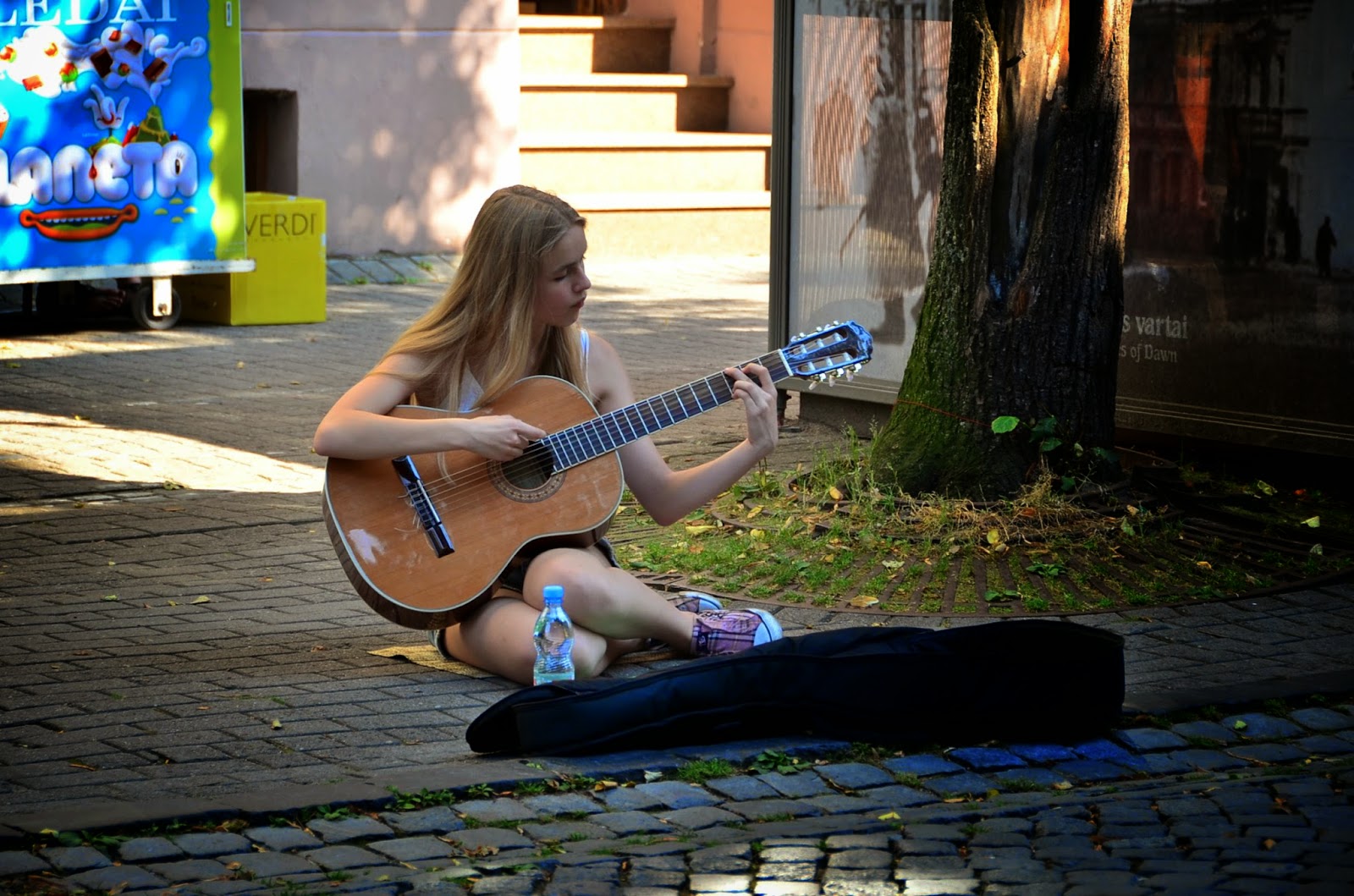 街頭藝人也有很美的,看這位美女邊彈吉他邊唱歌,她表演的很好,所以我有給她一些零錢(沒辦法,我是窮旅人)