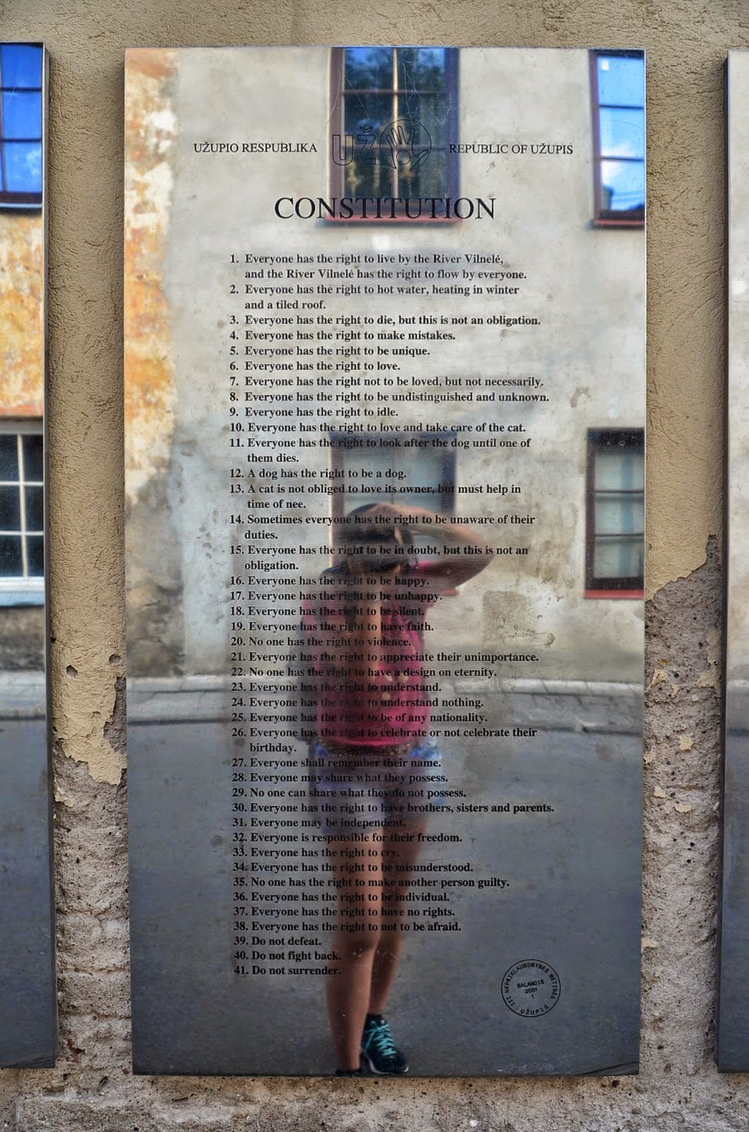 最後我們走到稍微郊外一點的地方,是維爾紐斯裡另一個城市Uzupio(這是當地人說的),這個地區很特別,有自己的市政廳,自己的宣言(宣言還挺特別的)。