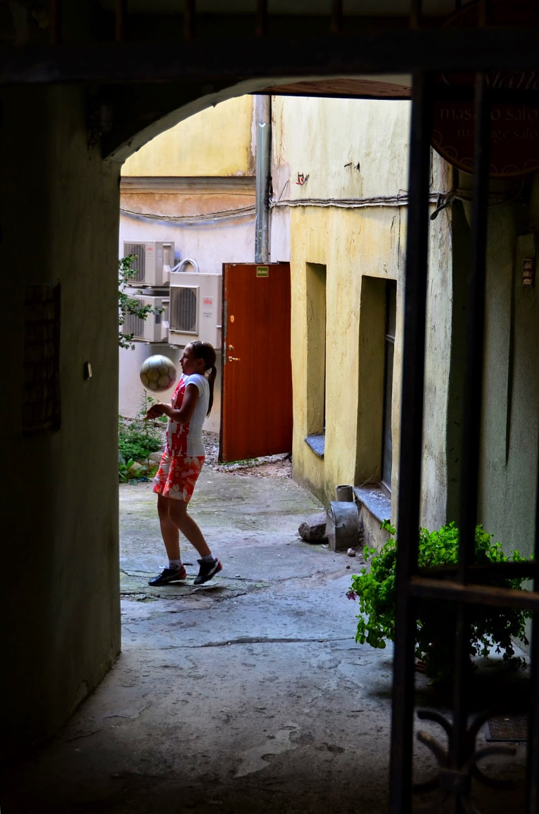 暗巷內也有孩子在打排球。