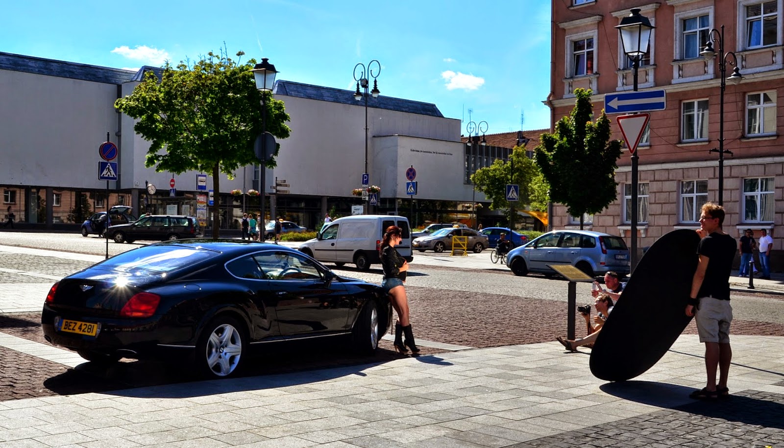 路上還有美人配美車在拍照呢!