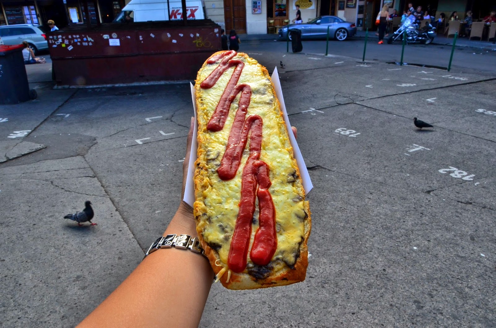 買路邊攤!!!超好吃的Zepinkanka!波蘭有名的小吃,在烤得酥軟的麵包上淋上起司與各種醬料,絕對讓你飽足一段時間。