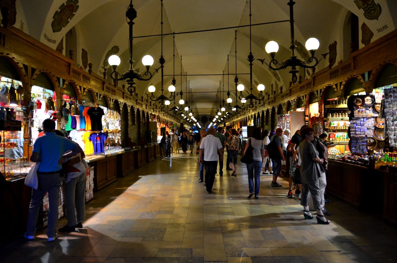 紡織會館裡的長廊,一旁都是賣紀念品的店。