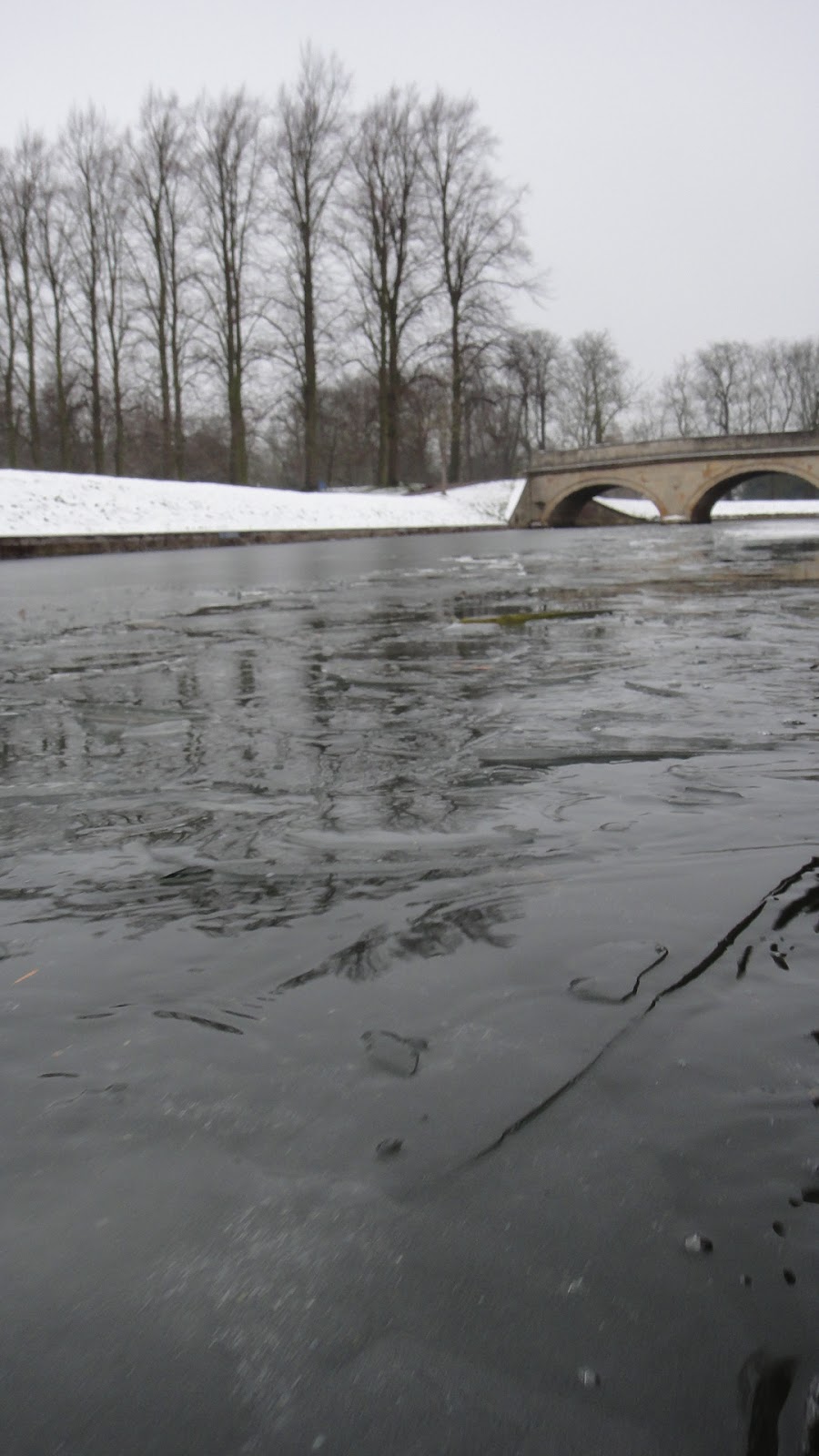 在當地稱為Punting的小遊船,河流一旁被層層的雪覆蓋。