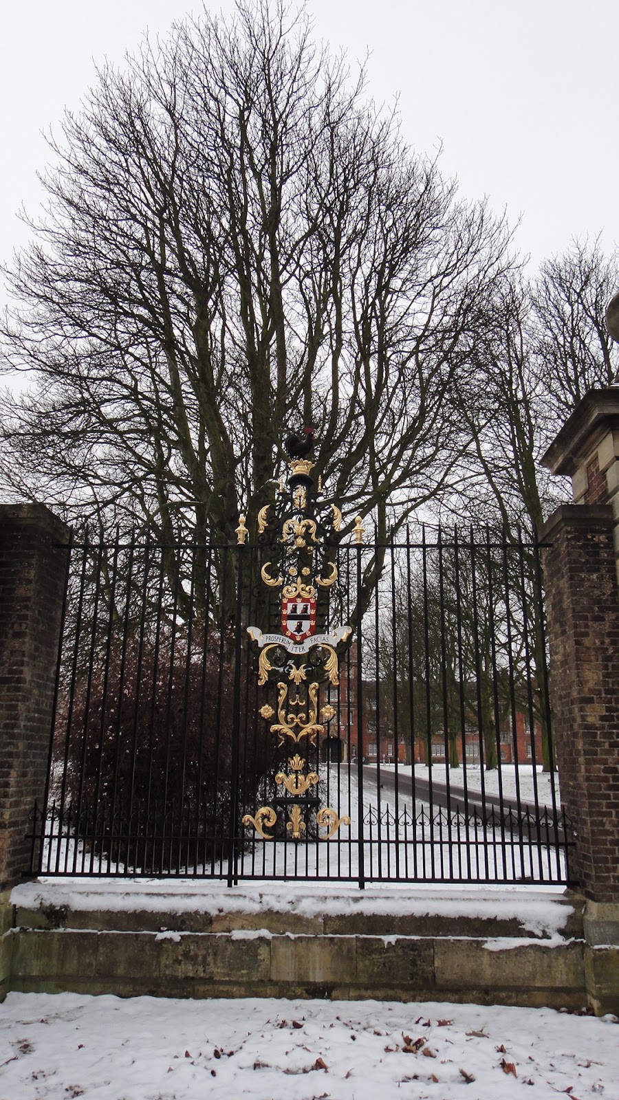 首先我們到了最大的學院之一Jesus College,走了很久才看到大門,不過想當然爾,他的柵門是關的,只能從圍欄後面看到整棟建築。