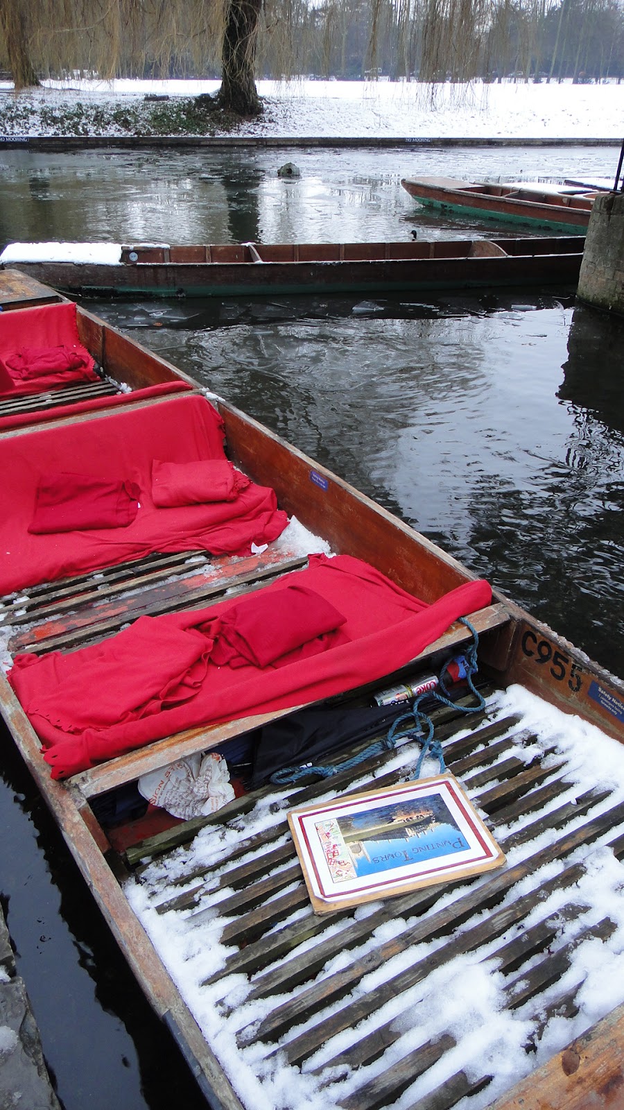 看到這個punting船我們當下都開始發抖了,因為船上都是雪,能蓋得也只是一條薄薄的毯子