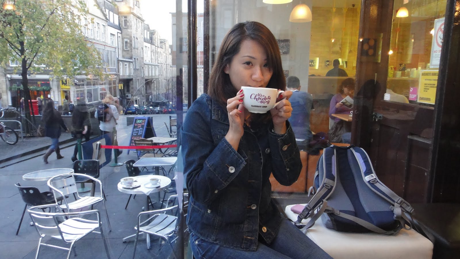 可愛的Olive請我喝愛丁堡有名的一間巧克力飲品店,我喝的白巧克力湯,好好喝,但好甜(而且好肥)