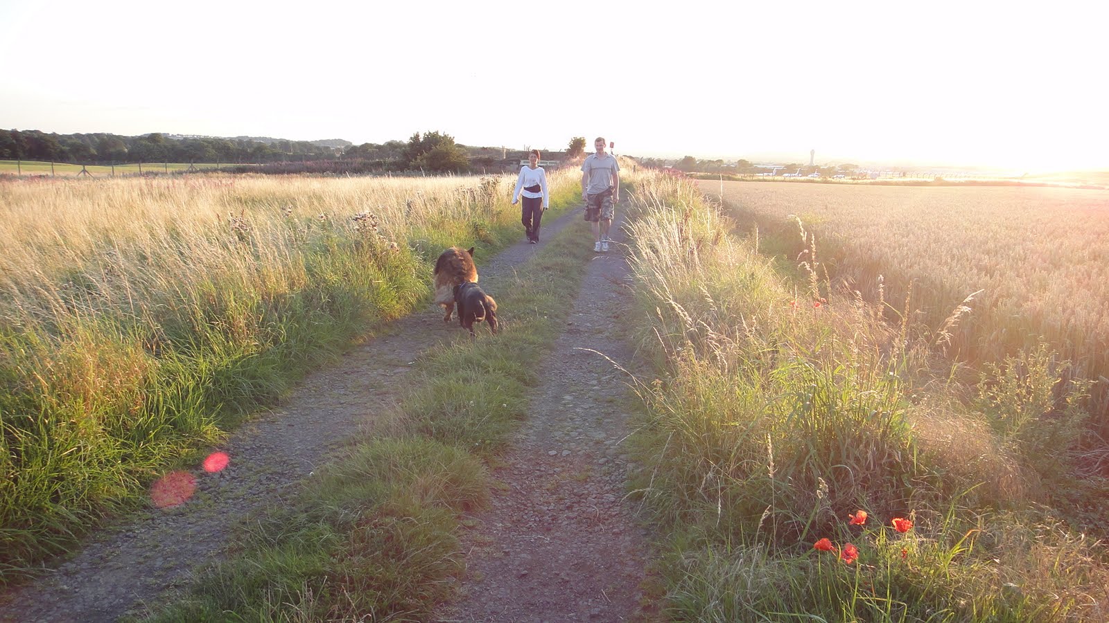 農場後面有一大片田,夕陽在那散步還真的挺愜意。