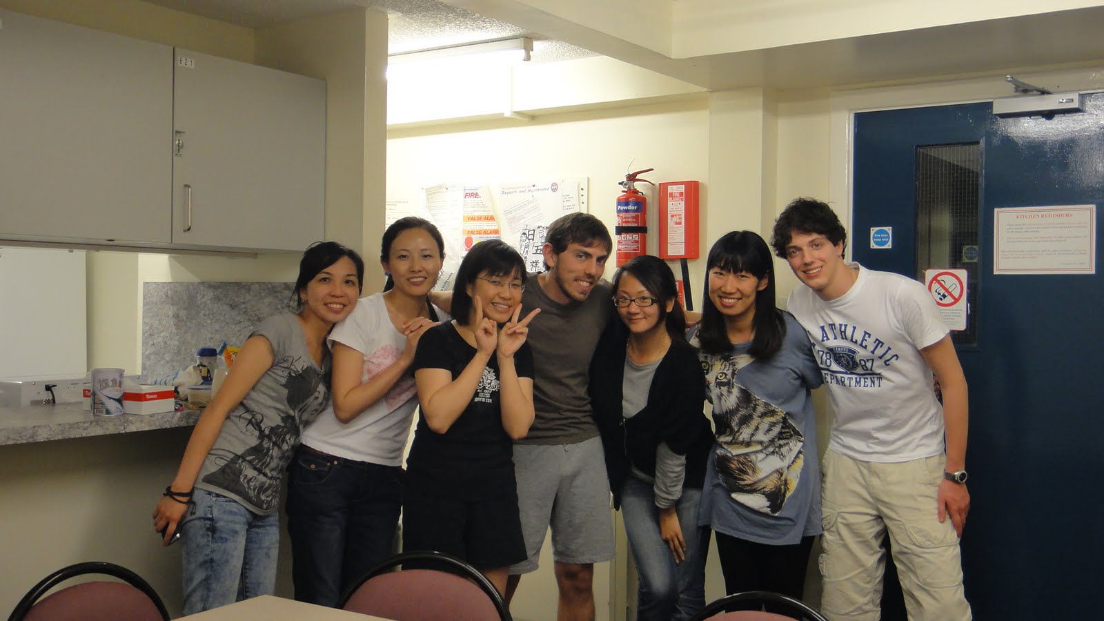 我後來搬出可怕寄宿家庭後,搬進了學校的宿舍,認識這群可愛的Kitchen mate我們有獨自的房間,但廚房有10個人共用,大家相處都很愉快。
