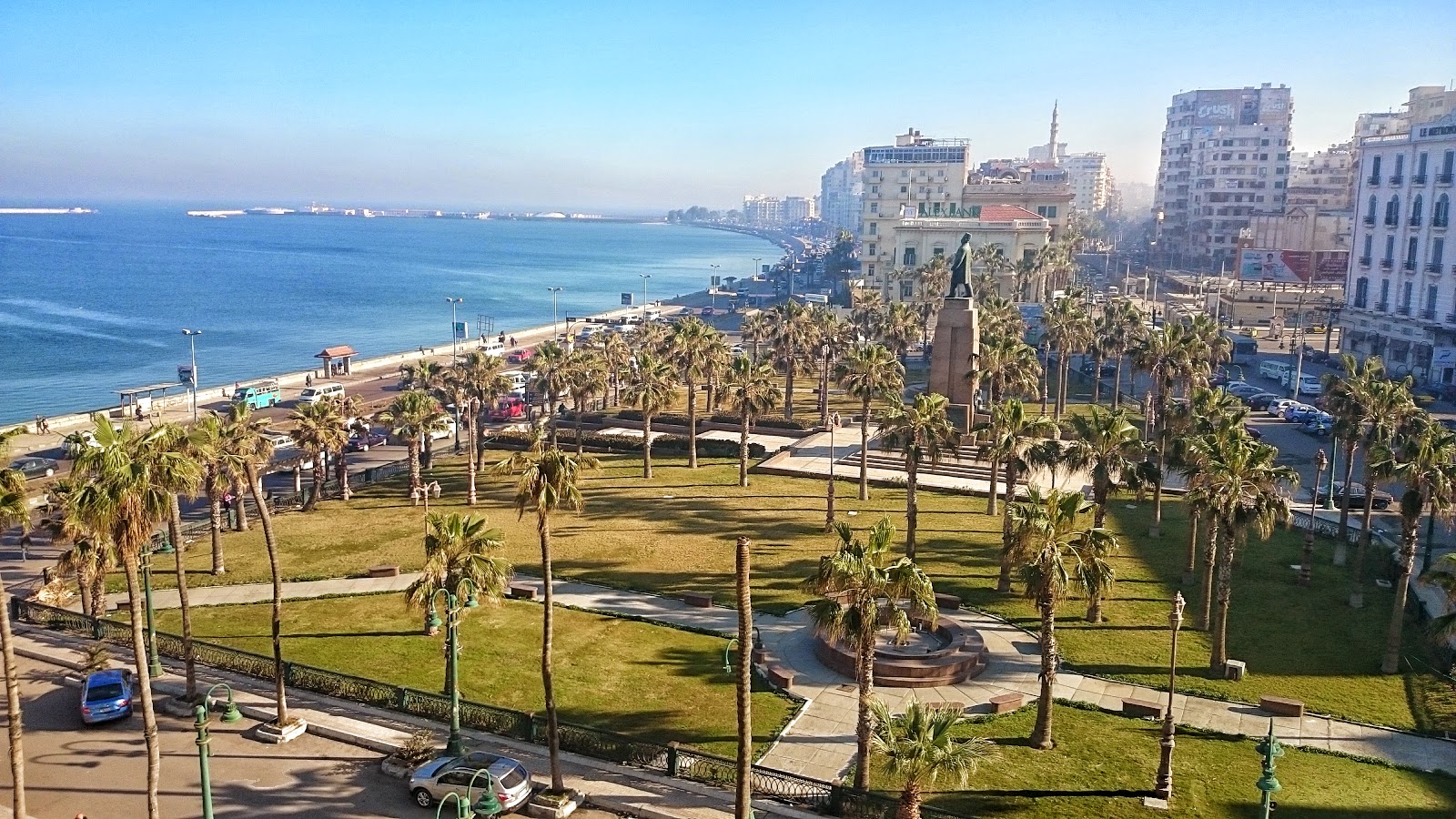 相信去過的人都知道開羅可怕的交通,雖說這是埃及第二大城,但沒有開羅的忙碌與擁擠。沿著地中海走,還會有很多媽媽爸爸帶著小孩在那坐著看海或是聊天。幾個好朋友也是坐在那嘰嘰喳喳的聊天,看到我們三個外國人,害羞(?)的咯咯笑。